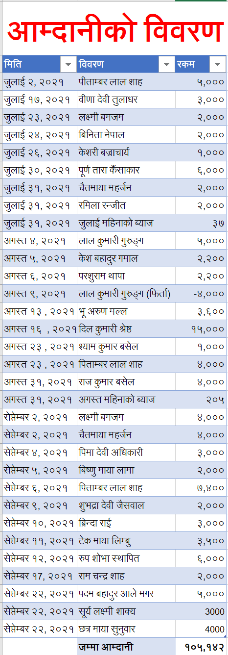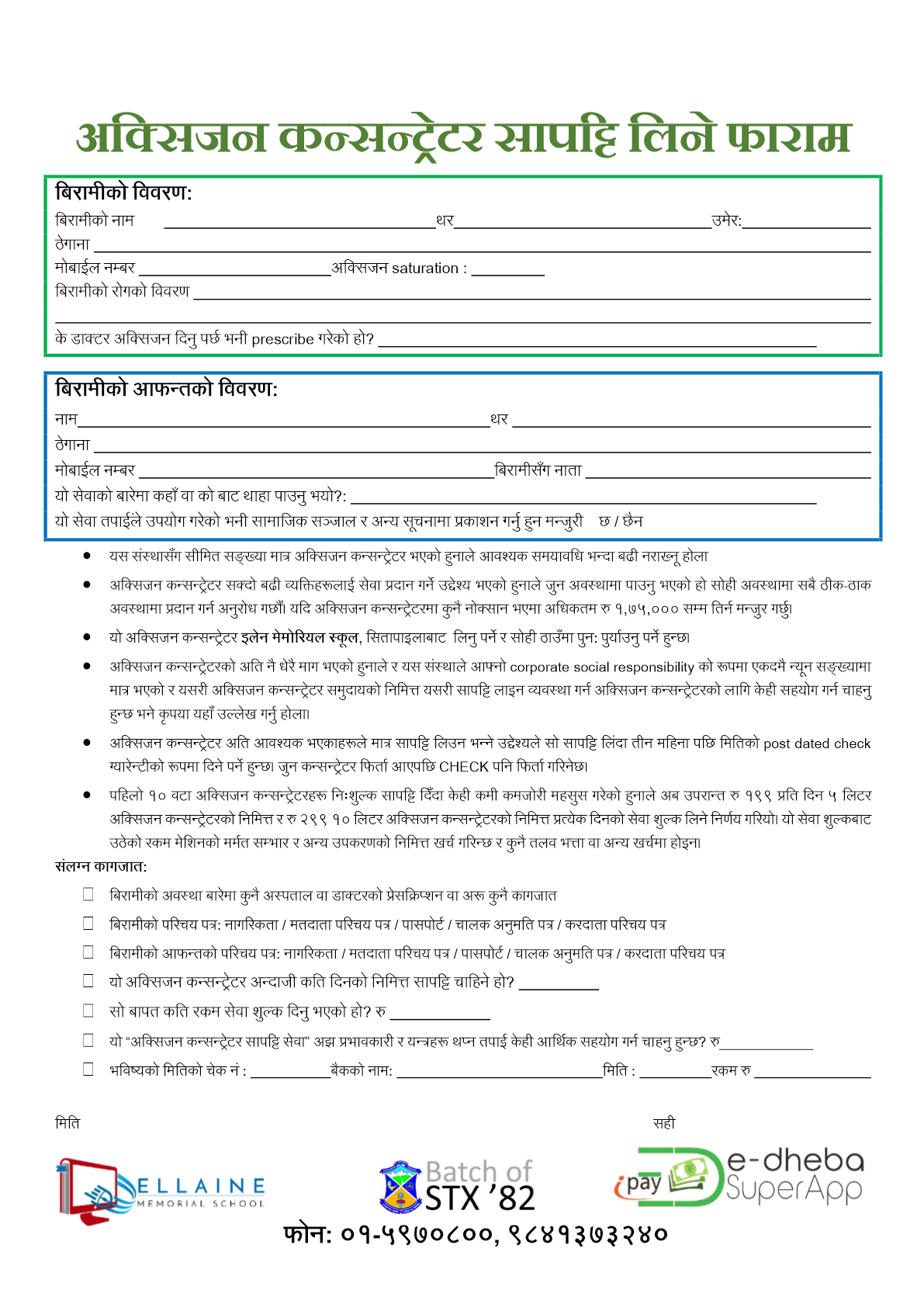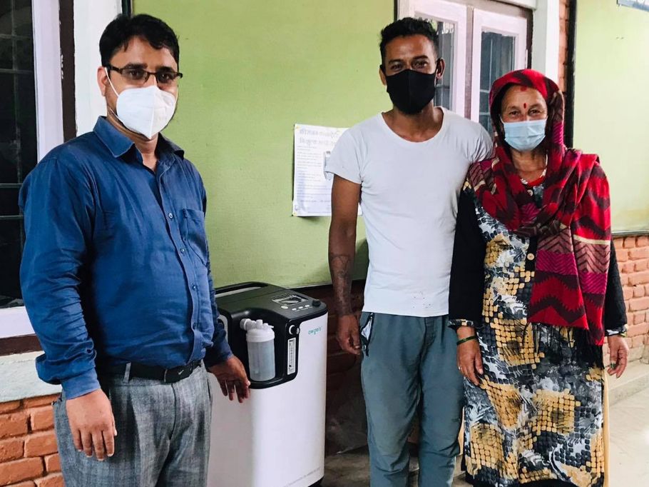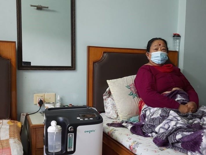 वडा नं ३०, मैतीदेवी काठमाडौँको बासिन्दालाइ,हेमोग्लोबिनको कमीले शरीरमा अक्सिजनको मात्रा घटेको छ | यसै कारणले अक्सिजन दिनु आवास्यक भएको हुनाले बिरामीको परिवारले अक्कसिजन कन्सनट्रेटर सापटी लिनु भएको छ |